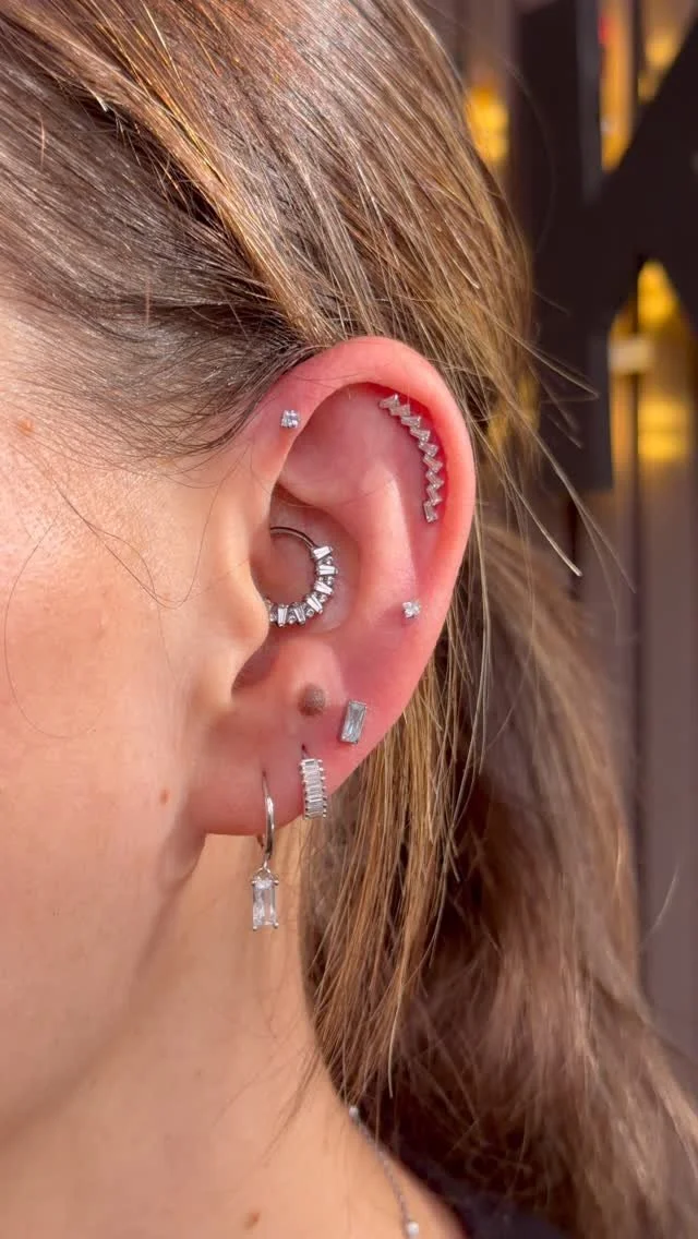 Elevate your ear game with our needle-only Luxury Piercing service. From delicate studs to statement hoops, we believe ear styling is a form of self-expression performed with precision and care.