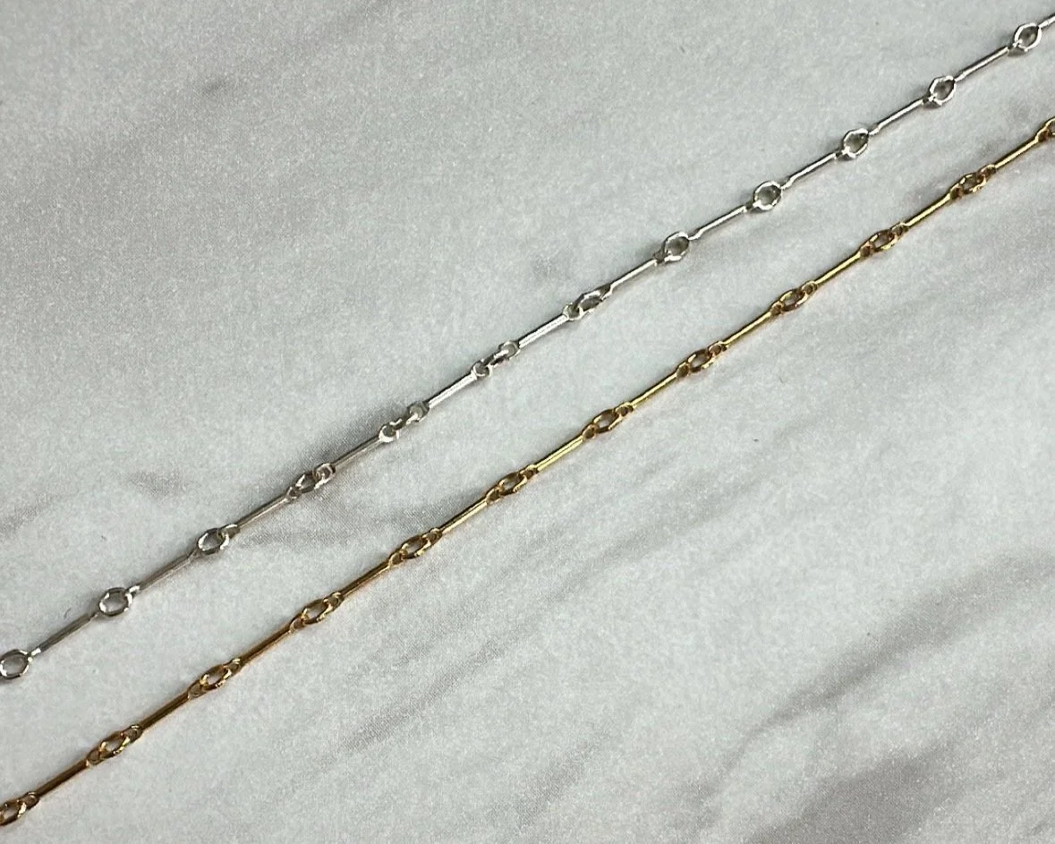 Our Bar chain. Inspired by the jewellery and iconography of ancient Egypt. Perfect for layering with other chains to create your own look or a statement on its own, a BLINK favourite. Available in 1mm Sterling Silver and Gold Filled.